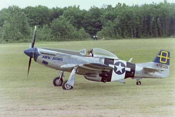 Eine Mustang beim Abbremsen des Triebwerkes kurz vor dem Startlauf...auch hier sind Ohrenschützer angeraten, denn das Allison-Triebwerk (eine Lizenz von Rolls Royce) entwickelt ebenfalls deutlich über 1.000 PS Startleistung. |