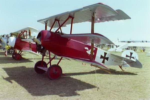 Auf dem Photo ist eine Reihe sehr schöner Fokker-Dreidecker zu bewundern. Allerdings handelt es sich bei den Flugzeugen um Replikas mit einem Sternmotor neueren Datums. Das erspart wohl auch jede Menge an Adrenalin :-) |