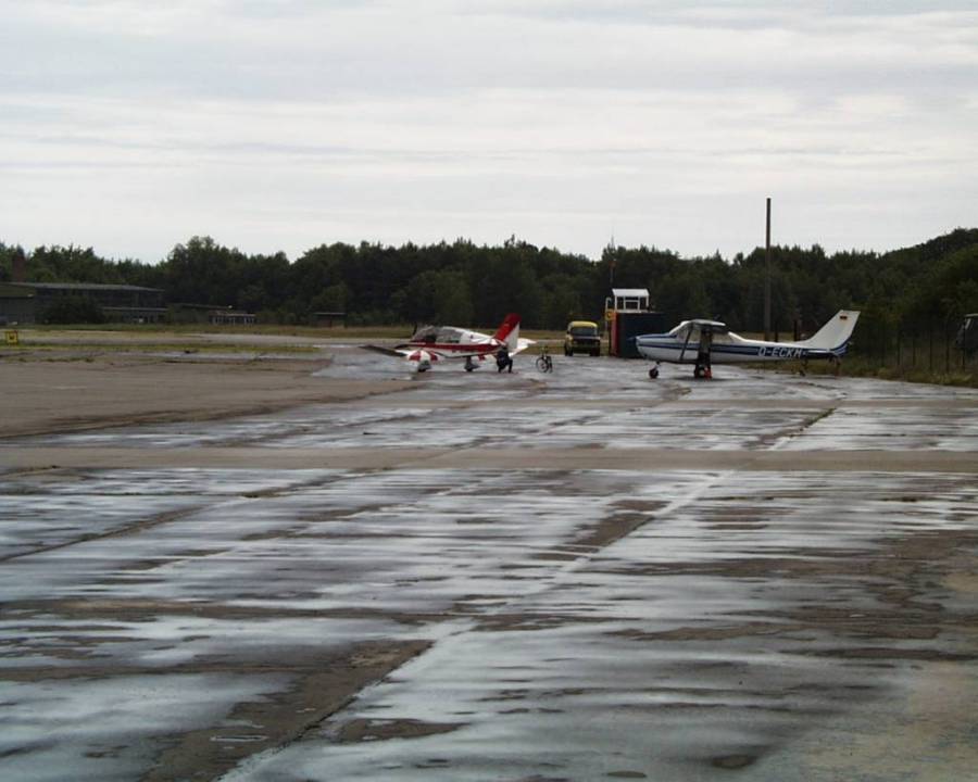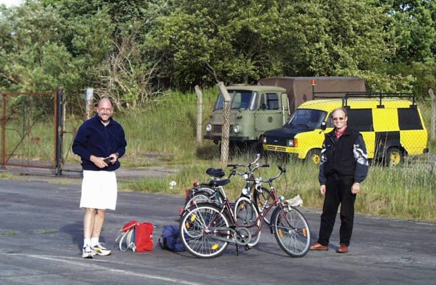 Nachdem wir in Peenemünde gelandet waren, galt es zunächst die Maschiene zu verzurren und das spärliche Gepäck (Toilettenbeutel, Ersatzunterhose, Jacke) auszuladen. Zur Quartiersuche im nahegelegenen Ort Karlshagen liehen wir uns vom freundlichen Platzwart gegen eine geringe "Gebier" ein paar Fahrräder aus. Schon die erste Inspektion des Vorfeldes zeigte, dass es am nächsten Tag einiges zu entdecken geben würde.