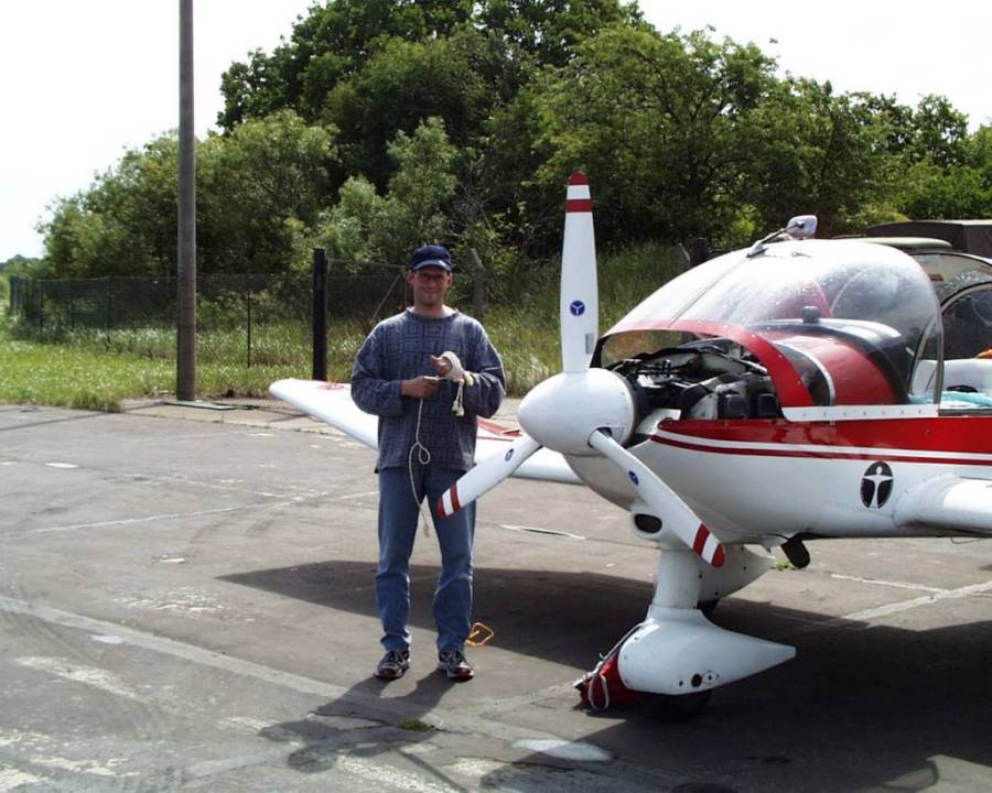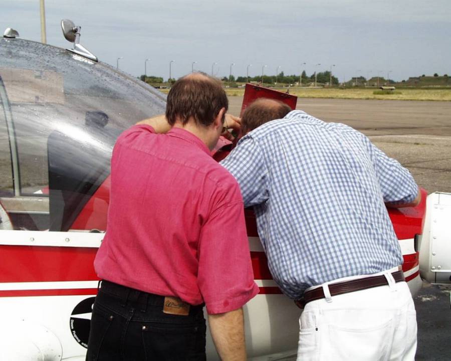 Am nächsten Morgen machten wir beim Check unseres Flugzeuges eine unangenehme Entdeckung. Die Batterie hatte sich entladen, weil wir vergessen hatten, den Hauptschalter auszuschalten. So hatten die elektrisch betrieben Kreisel-Instrumente über Nacht die Batterie leer gezogen. Es stand uns also ein Zwangsaufenthalt von mehreren Stunden bevor, den wir zunächst für einen Besuch des kleinen Flugplatzkaffees nutzten. Um wilden Spekulationen vorzubeugen, bei der Dame auf dem linken Photo handelte es sich um eine geschickt drappierte Schaufensterpuppe :-)
